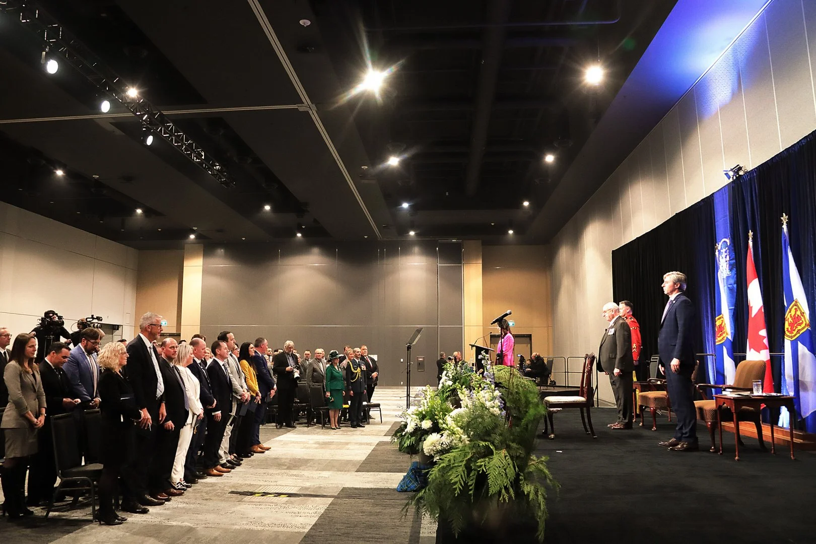 Premier Tim Houston and cabinet members at the swearing in ceremony at the Halifax Convention Centre. (Communications Nova Scotia).